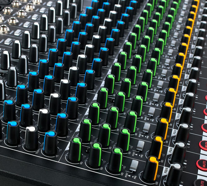 Профессиональный 22-канальный аналоговый микшерный пульт с USB-аудиоинтерфейсом 2x4. АЦП/ЦАП до 24 бит/192 кГц. 14 моно и 4 стерео входов. 14 входов для микрофонов с фантомным питанием и предусилителями ONYX. 3 общих стерео выхода, выходы AUX и Sub, выход для наушников, 14 Insert-входов. DSP-процессор GigFX, 3-полосные эквалайзеры, НЧ-фильтры.