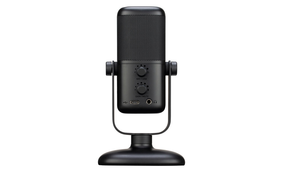 Конденсаторный USB-микрофон. АЦП – 24 бит/48 кГц. Кардиоидная диаграмма направленности. Частотный диапазон 20 Гц – 20 кГц, максимальное звуковое давление 120 дБ. Выход для наушников, индикация входного уровня, кнопка Mute, функция мониторинга входного сигнала. Порт USB-C для подключения и питания. В комплекте USB-кабели и резьбовой адаптер.