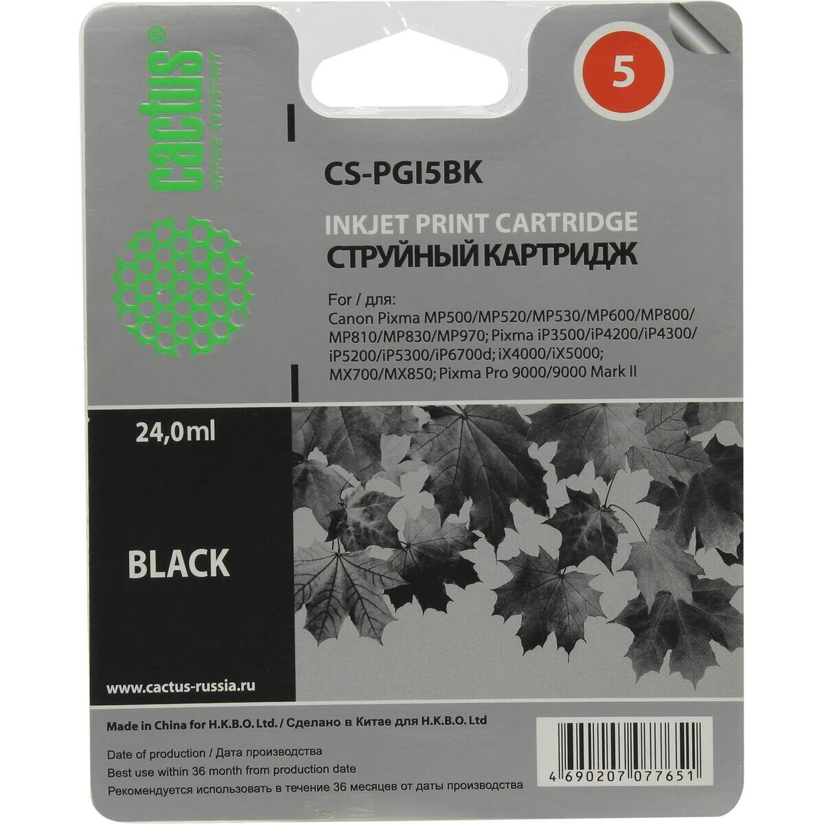 Картридж Cactus CS-PGI5BK для Canon Pixma MP470/MP500/MP520/MP530/MP600/MP800/MP810/MP830/MP979/iP3500/iP4200/iP4300