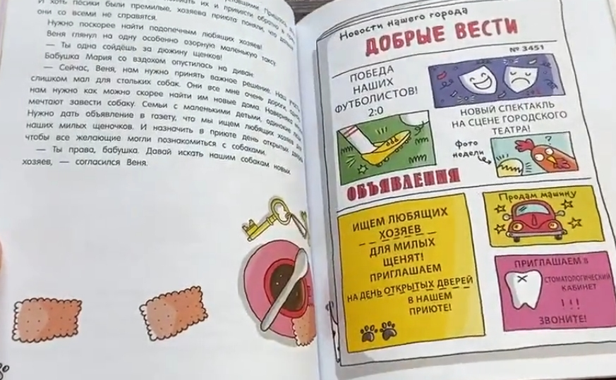 Читай увлекательную историю о собачьем приюте, проходи игры, чтобы помочь пёсикам обрести дом, ищи потеряшек - и всё это под обложкой одной книги! Любишь собак? Должно быть, ты знаешь уйму мультфильмов и книг про них. Но эта книжка тебя удивит! Она не похожа ни на что из того, что тебе довелось посмотреть или прочитать. На страницах этой книги ты не только прочтёшь историю о необычном приюте, который стал домом сразу для 101 собаки, но и решишь интересные задачки, которые покажут, что следить за таким большим количеством питомцев не так-то просто! Это уникальное издание: историю дополняют игры, которые делают тебя частью повествования. Присоединяйся: проходи лабиринты, ищи отличия, рисуй, раскрашивай, фантазируй, пиши и просто отлично проводи время в компании очаровательных пёсиков и их хозяев. Главной интригой останется - сможешь ли ты найти 101 пёсика, каждый из которых спрятался на страницах книги. Принимаешь вызов? За дело! Для младшего школьного возраста