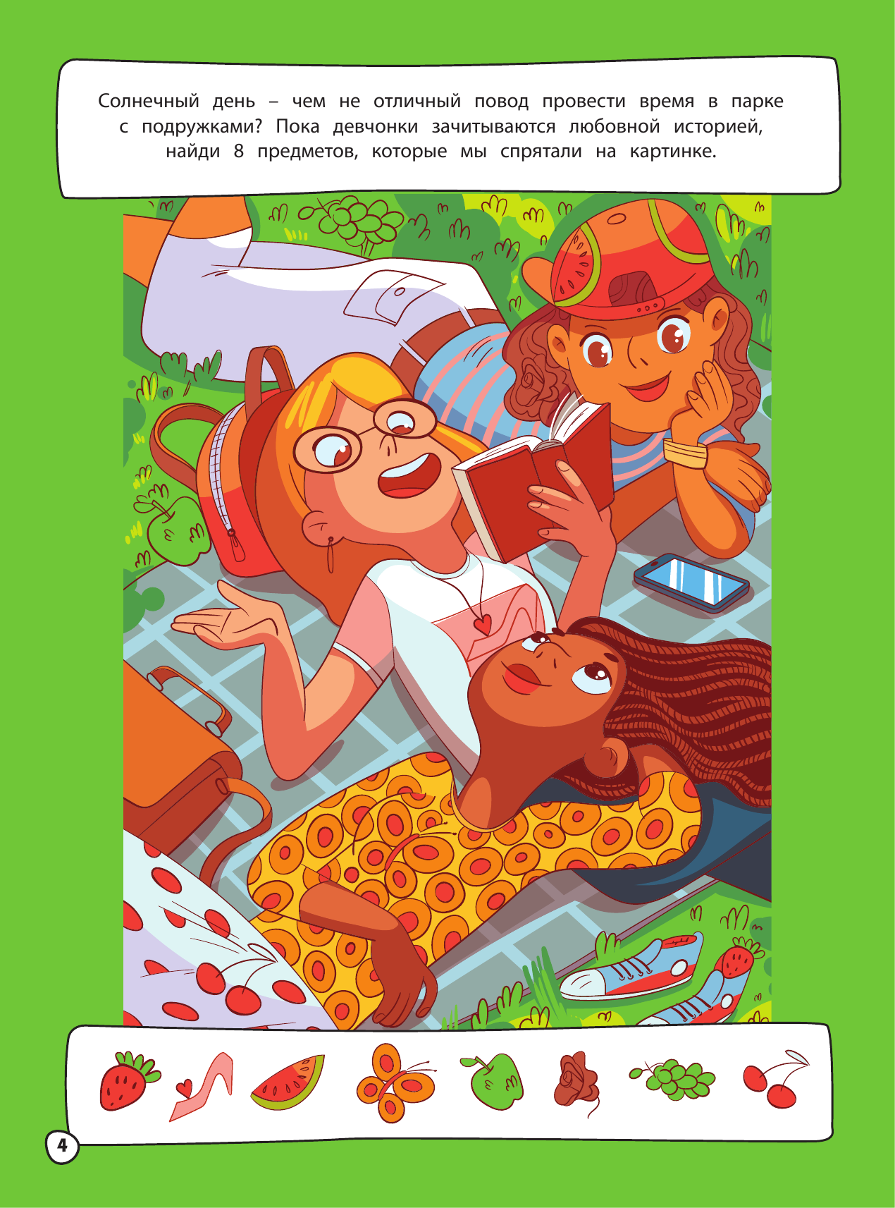 Очень яркая, красочная книжечка с играми для девочек. Много заданий по поиску предметов на большом полотне и всевозможные лабиринты, а также найти отличия. На всех страницах присутствуют иллюстрации, как маленькие, так и крупным планом. Книга получилась модной и интересной, ведь основная тема посвящена девочкам, красоте и секретикам.
