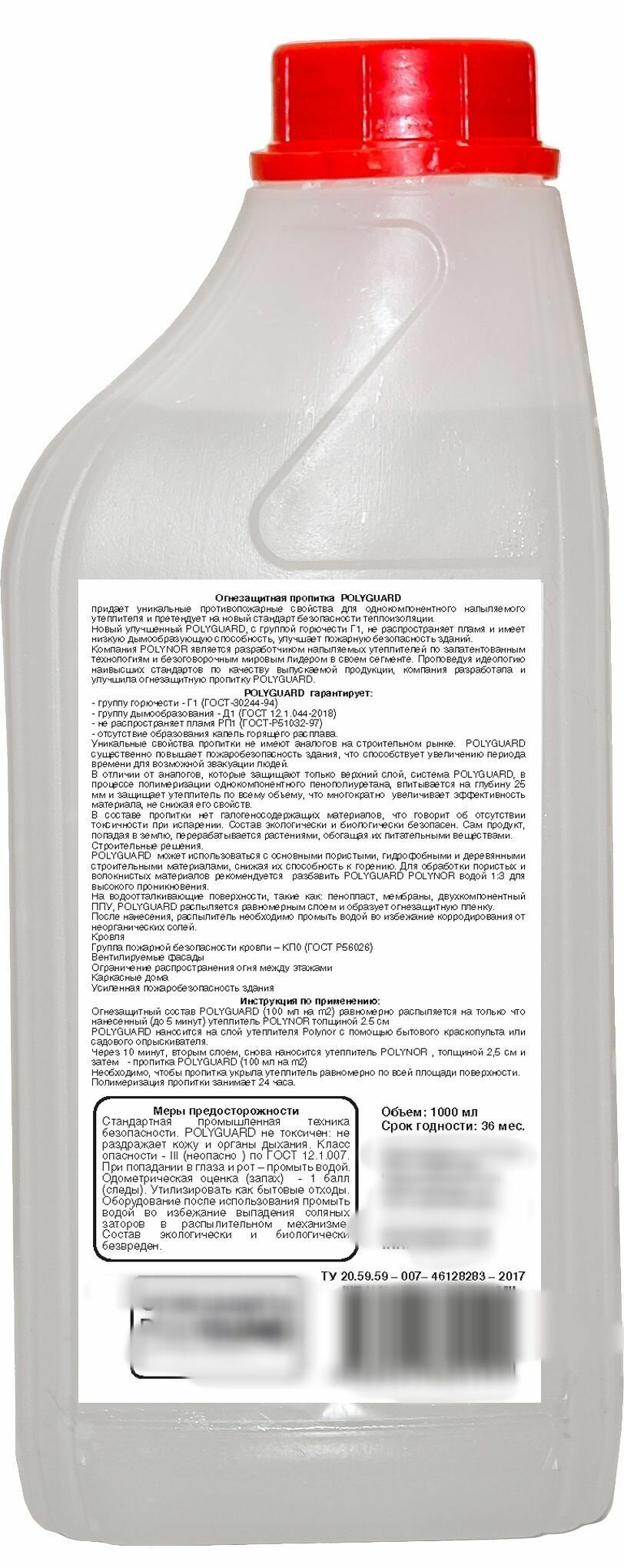 Пропитка огнезащитная Polynor «Polyguard» предназначена для снижения класса пожарной опасности напыляемого утеплителя Polynor.