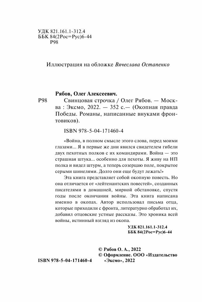 Свинцовая строчка (Рябов Олег Алексеевич); ООО "Издательство "Эксмо", 2022