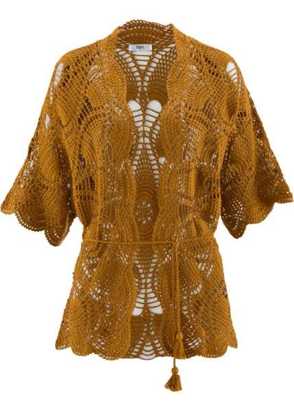 Длинный кардиган из вязаного кружева с рукавом 3/4 (олений) bonprix для женщин (размер: 40/42)