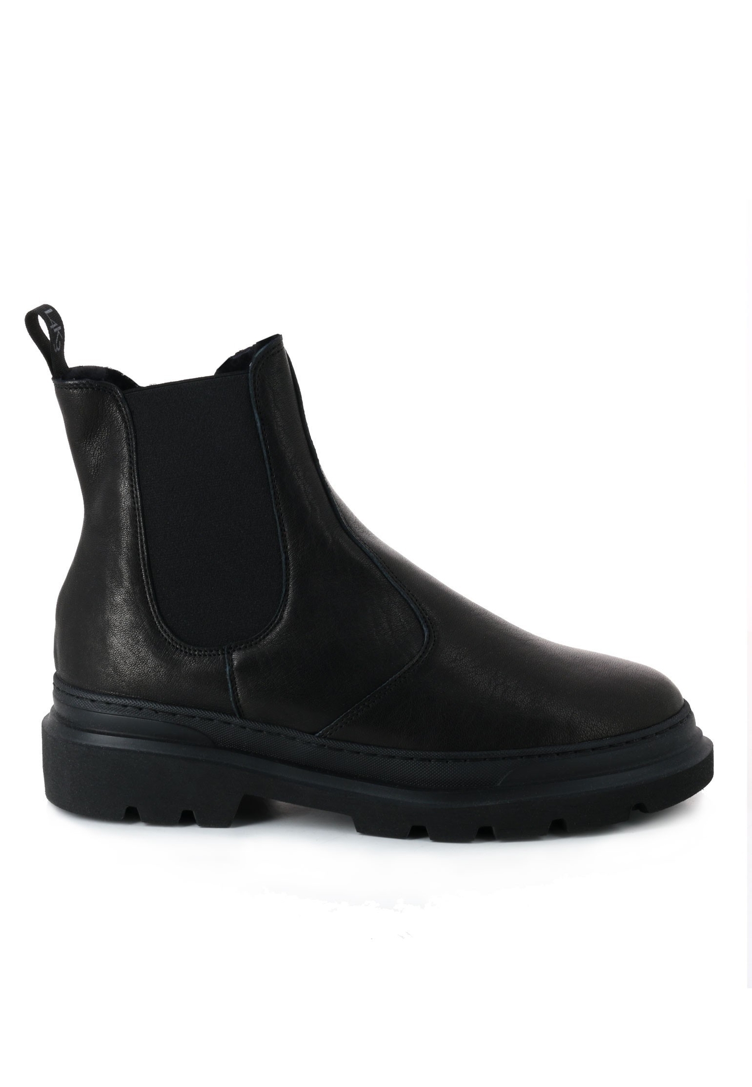 Бренд Lake включил в новую коллекцию челси, созданные с максимальным комфортом и заботой о ногах в зимний сезон. Пару утеплили мехом, а для пошива выбрали кожу универсального цвета черной икры, которую смягчили и дополнили эластичными вставками по бокам. Лаконичный дизайн также разбавили петлями сзади, служащие удобному переобуванию. Специальная ребристая подошва с устойчивым каблуком обеспечит надежное сцепление с поверхностью.