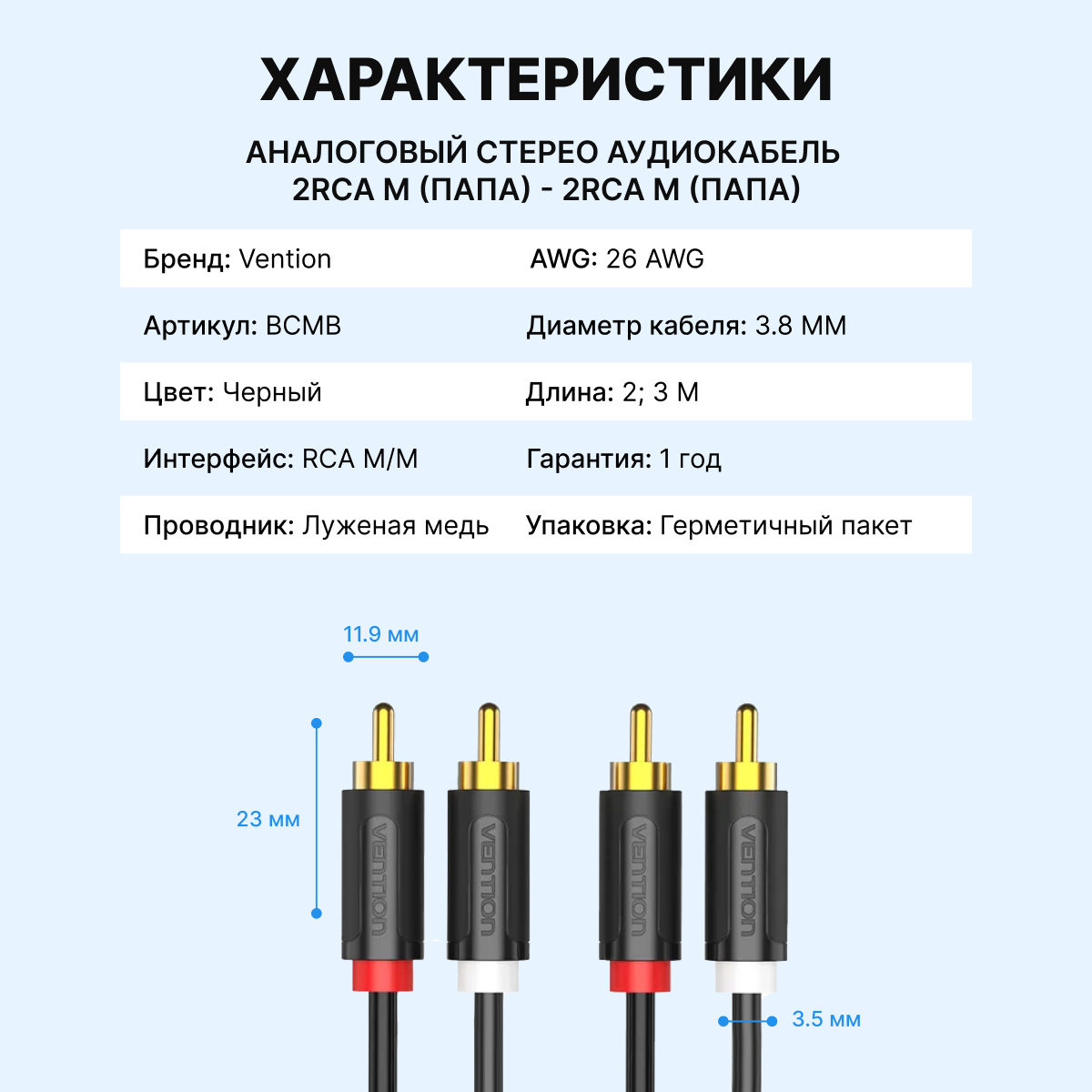 | Тип разъема | 2хRCA вилка/2xRCA вилка |