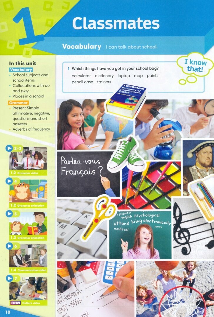 Материал учебника представляет 8 тематических блоков с лексическим и грамматическим материалом, необходимым для развития всех четырёх языковых навыков в сопровождении красочных иллюстраций и видео программ BBC. Стабильный прогресс в изучении языка обеспечивается понятными объяснениями и справочными советами, а также постепенным усложнением упражнений. Ученики узнают, как можно оценить себя с помощью раздела "Check yourself!" (пер. с англ. "Материалы для самопроверки") - ключевого навыка для плодотворной работы. В курс плавно включаются практические задания экзаменационного типа для успешной сдачи тестов/экзаменов. Выполнение различных практических заданий, использование языковых справочников и списков слов помогут ученикам в самостоятельной работе с курсом. Пошаговые инструкции к заданиям сделают эту работу понятной.