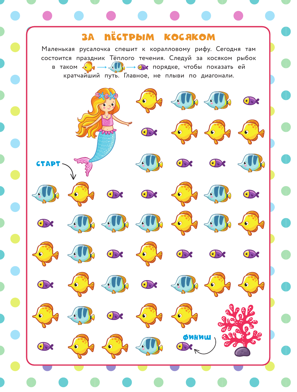 Окунись в океан чудес! Жизнь русалочек полна забавных приключений — присоединяйся! Без тебя им не справиться — помогай подводным жителям проходить лабиринты, искать отличия, находить лишнее, разгадывать судоку, искать потерявшиеся слова, подбирать недостающие детали пазлов и многое-многое другое. В книге собраны самые интересные и полезные головоломки — время в подводном царстве пролетит весело, а ты прокачаешь свой мозг и полезные навыки — станешь супервнимательным и сообразительным подводным героем. А ещё ты на славу повеселишься! Не время скучать — скорее открывай сборник головоломок и присоединяйся к подводным приключениям где угодно — книжку очень удобно носить собой.