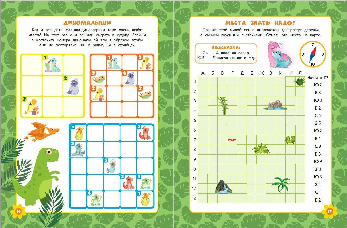 Соверши путешествие в прошлое! Жизнь динозавриков полна неожиданных событий и забавных приключений — присоединяйся! Без тебя им не справиться — помогай доисторическим существам проходить лабиринты, искать отличия, находить лишнее, разгадывать судоку, искать потерявшиеся слова, подбирать недостающие детали пазлов и многое-многое другое. В книге собраны самые интересные и полезные головоломки — время пролетит весело, а ты прокачаешь свой мозг и полезные навыки — станешь супервнимательным и сообразительным героем. А ещё ты на славу повеселишься! Не время скучать — скорее открывай сборник головоломок и присоединяйся к масштабным приключениям где угодно — книжку очень удобно носить собой.