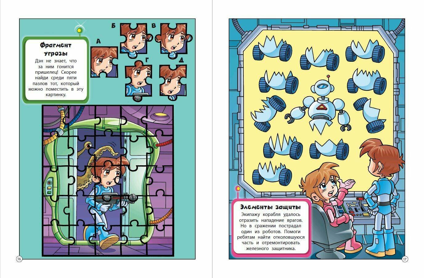 Исследуй космос вместе с героями аниме! Отправляйся в незабываемое приключения по просторам Вселенной и познакомься с экипажем космического корабля — Дэном, Кристи и инопланетянином Зорглом. Без тебя им не справиться — помогай отважным космонавтам проходить лабиринты, искать отличия, находить лишнее, разгадывать судоку и шифры, подбирать недостающие детали пазлов и многое-многое другое.