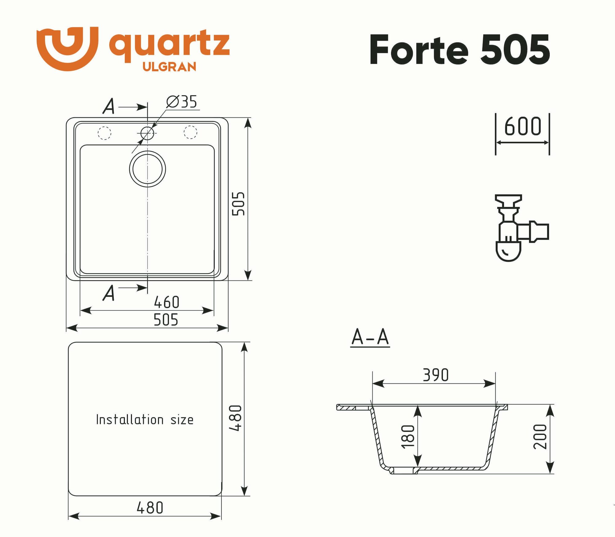Мойка кухонная Ulgran Quartz уголь Forte 505-07