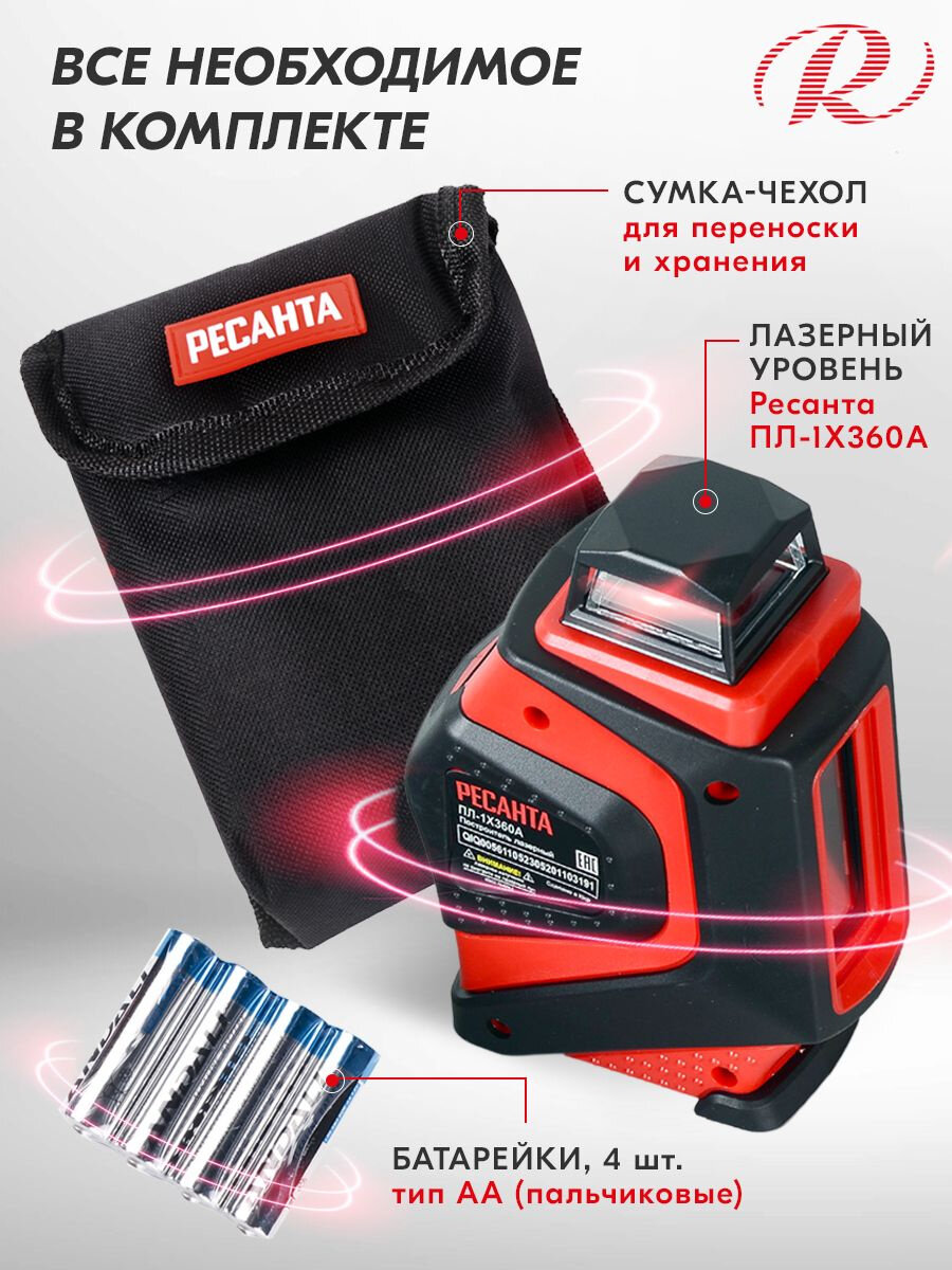 Лазерный нивелир Ресанта ПЛ-1Х360А, 2 класс лазера, цвет луча красный,2луч. (61/10/527)