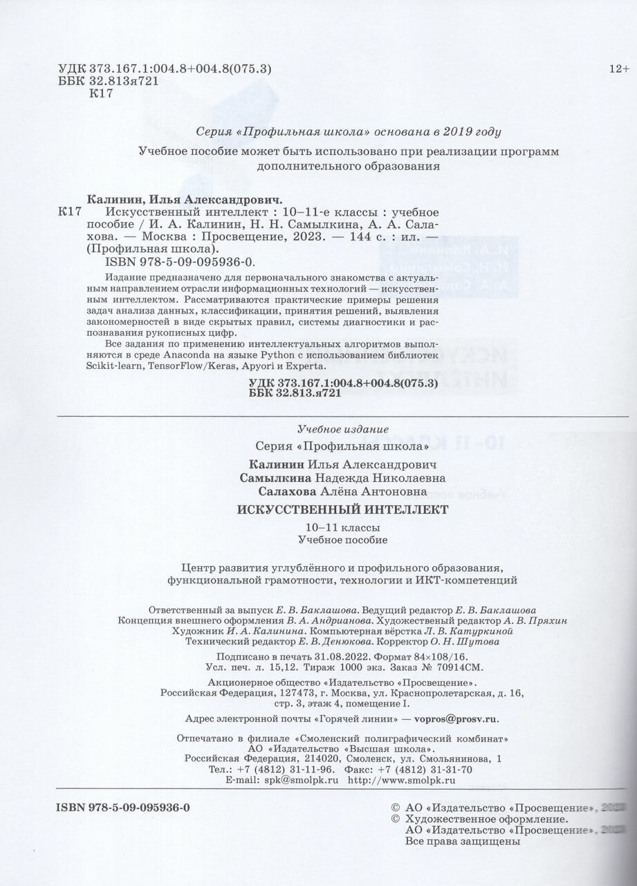 Искусственный интеллект. 10-11 классы. Учебное пособие. ФГОС; БИНОМ. Лаборатория знаний, 2023