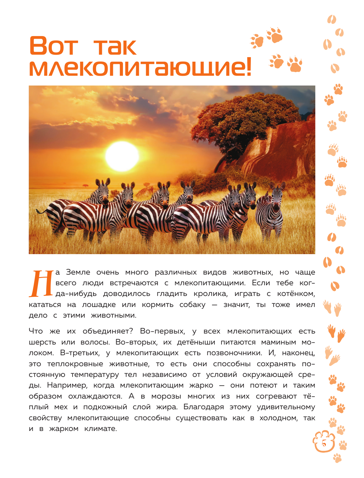 Внимание! Если ты хочешь узнать всё самое захватывающее о млекопитающих, то скорее открывай эту книгу! Будет интересно! Ты прочитаешь о том, зачем дикобразам иголки, где обезьяны принимают горячие ванны, почему медведи впадают в зимнюю спячку, как слоны используют хоботы. А ещё тебя ждут большие, яркие и красочные фотографии. Добро пожаловать в мир животных! Для младшего школьного возраста.