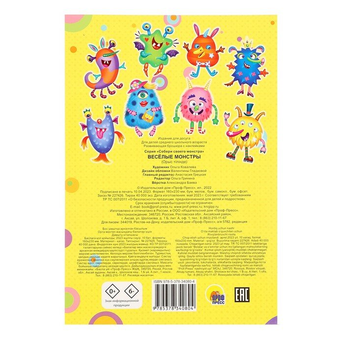 Веселые монстры. С наклейками; Проф-Пресс Издательский Дом ООО, 2022