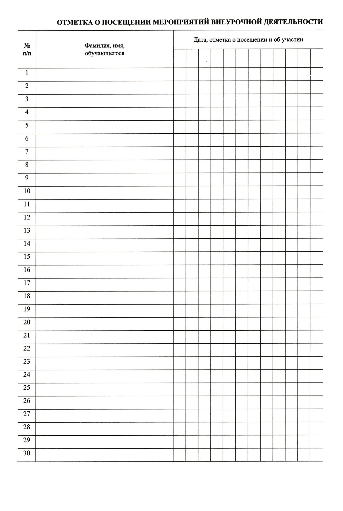 Журнал учёта занятости обучающихся начального общего образования внеурочной деятельностью Учитель