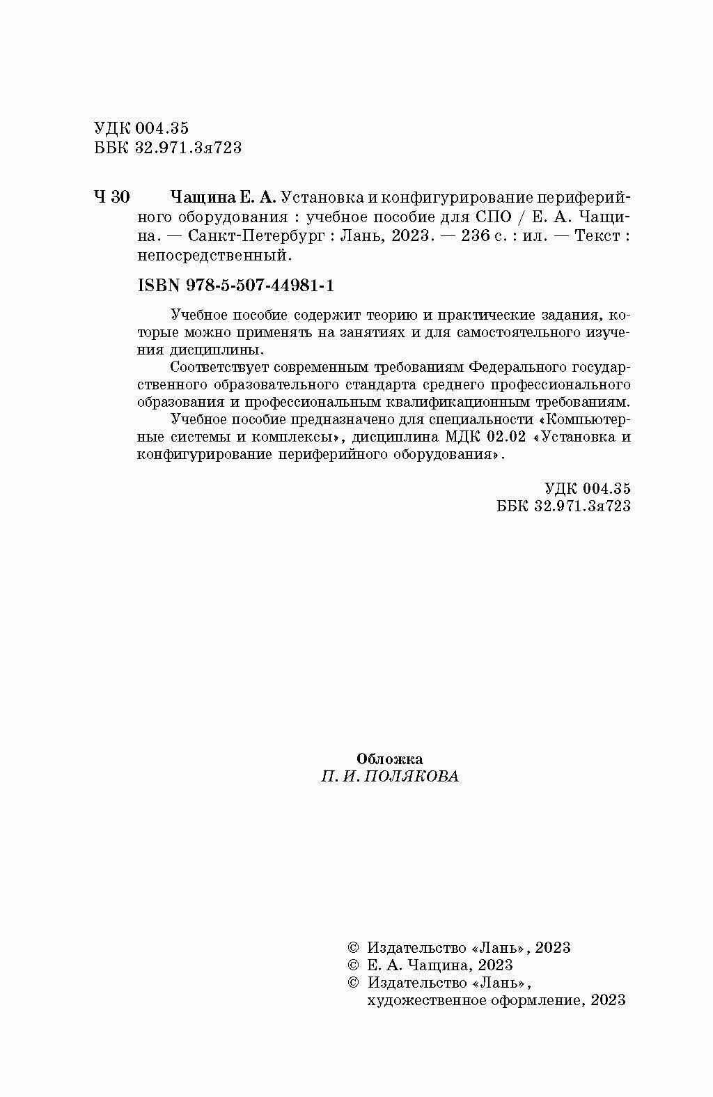 Установка и конфигурирование периферийного оборудования; Лань, 2023