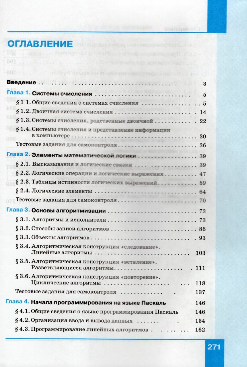 Учебник соответствует ФГОС 2021 г. Учебник входит в состав УМК по информатике для 7-9 классов, включающего авторскую программу, учебники, электронные приложения, методическое пособие, рабочие тетради, сборники задач и другие компоненты. УМК может использоваться после вводного курса информатики в 5-6 классах или полностью самостоятельно обеспечивать освоение обязательного курса информатики в 7-9 классах, поддерживая базовую (1 ч/нед.) модель изучения предмета на уровне основного общего образования. Содержание учебника структурировано по темам "Системы счисления", "Элементы математической логики" (тематический раздел "Теоретические основы информатики"), "Основы алгоритмизации", "Начала программирования" (тематический раздел "Алгоритмы и программирование"). Теоретический материал поддержан развёрнутым аппаратом организации усвоения изучаемого материала, направленным на достижение обучающимися личностных, метапредметных и предметных образовательных результатов, обеспечивающим подготовку школьников к государственной итоговой аттестации по информатике в форме основного государственного экзамена (ОГЭ). Выдержан принцип инвариантности к конкретным моделям компьютеров и версиям программного обеспечения. Соответствует ФГОС ООО и примерной рабочей программе по информатике для основного общего образования.