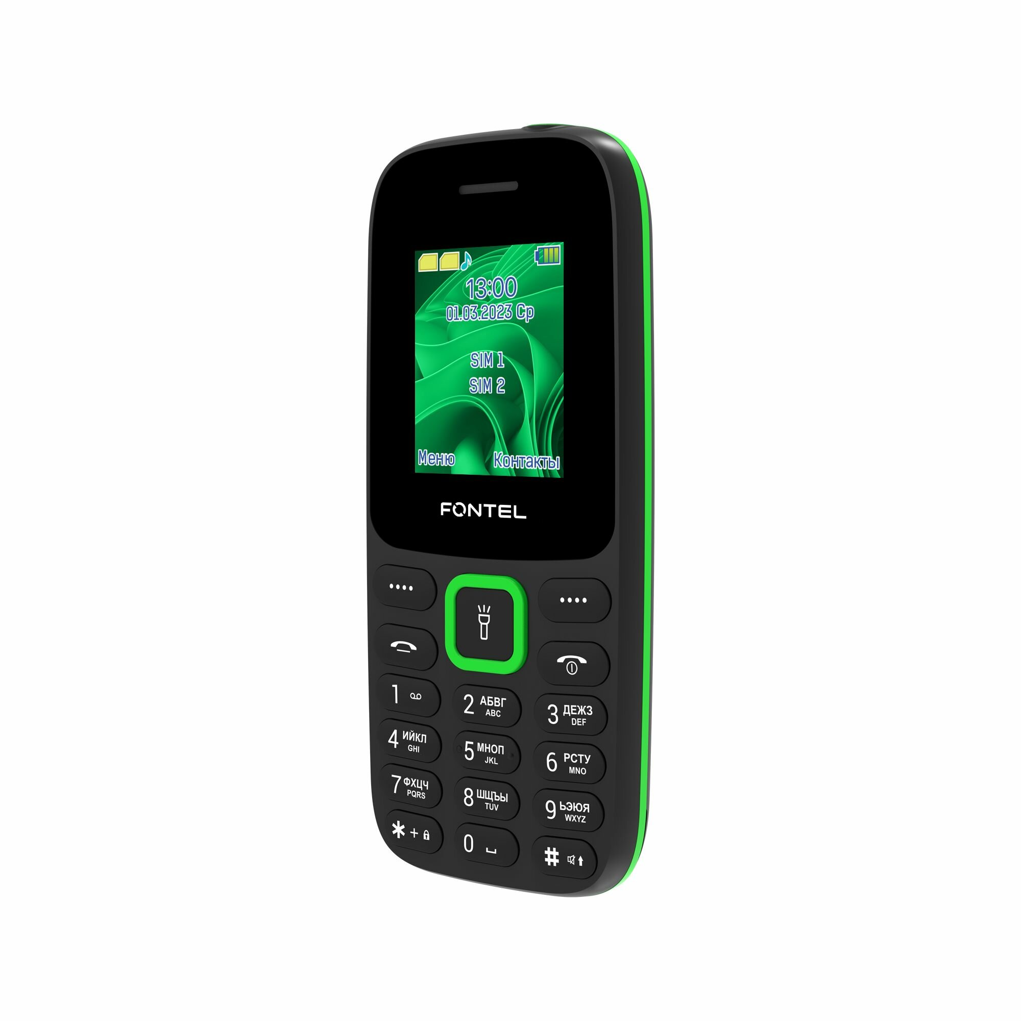 Мобильный телефон Fontel FP200 (черно-зеленый) — это компактная модель, которую удобно брать с собой в дорогу.