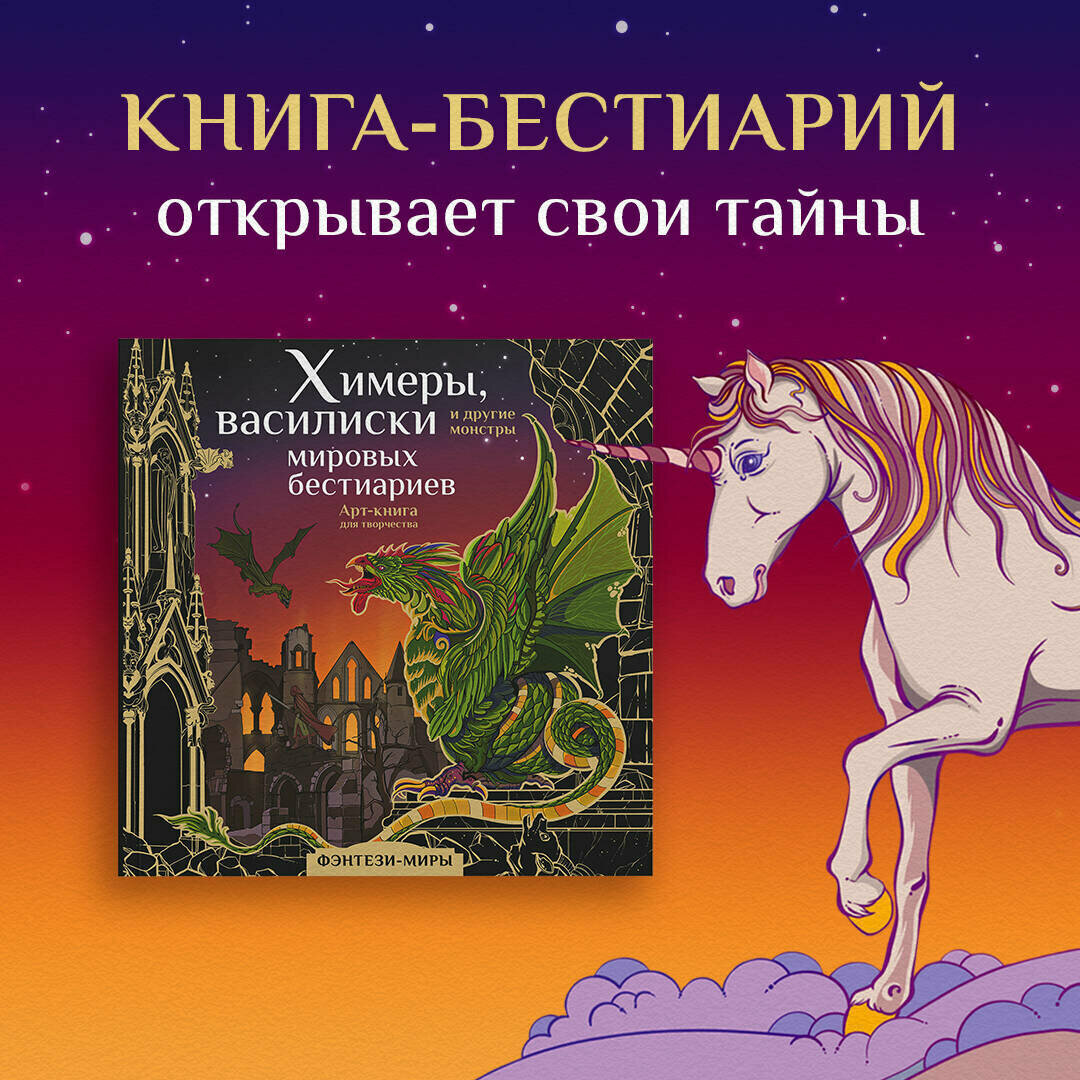 Исследуйте, узнавайте интересные факты и творите вместе с арт-раскраской «Химеры, василиски и другие монстры мировых бестиариев»!