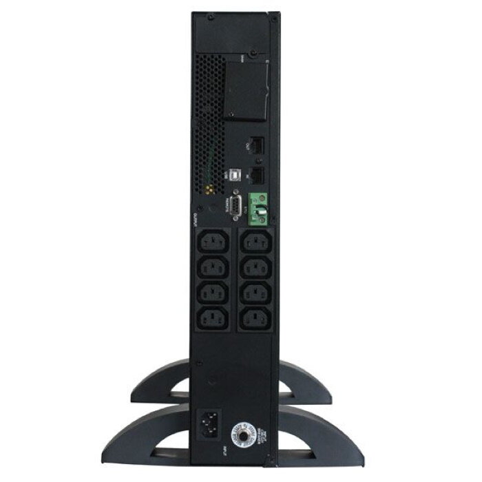 Универсальные ИБП серии SMART RT с синусоидальной формой выходного напряжения предназначены для защиты персональных компьютеров, рабочих станций, серверов и другого ответственного оборудования, критичного к форме питающего напряжения, от основных неполадок с электропитанием. Встроенный стабилизатор напряжения обеспечивает работу подключенного оборудования при колебаниях напряжения электросети без использования ресурса аккумуляторов. Для удобства «горячей» замены аккумуляторов предусмотрен отдельный батарейный отсек доступный через переднюю панель.