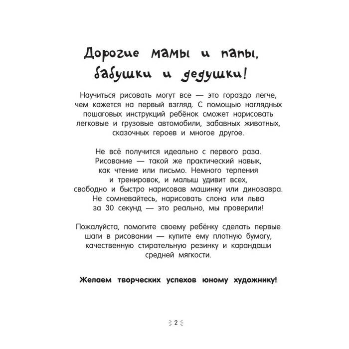 В книге «Рисуем за 30 секунд. Для мальчиков» — пошаговые наглядные инструкции, которые помогут ребёнку научиться рисовать легковые и грузовые автомобили, забавных животных, сказочных героев и многое другое. Рисовать могут все — это гораздо легче, чем кажется на первый взгляд. Для дошкольного возраста.