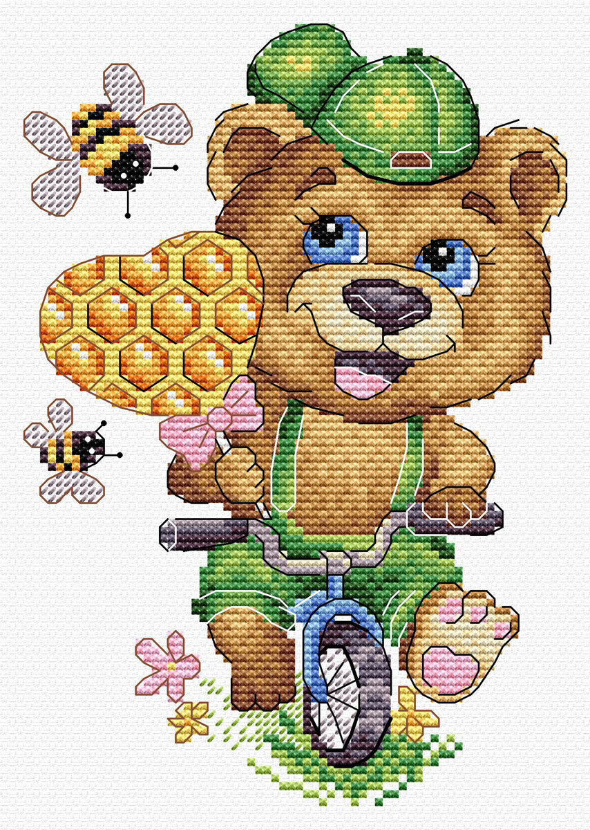 Серия наборов для вышивания крестиком на одежде.В каждый набор входит:• Отрез водорастворимой канвы (каунт канвы соответствует 14 обычной хлопчатобумажной канвы).• Игла.• Нитки мулине, разобранные на органайзере.• Бумажная двуцветная символьная схема.• Руководство по выполнению работы, которое переведено на 8 языков.Руководство по выполнению работы:1. Разместите канву на изделии так, чтобы пять нижних рядов канвы заходили внутрь кармана.2. Приметайте канву по периметру белыми нитками, отступая две клетки от края. Сделайте разметку, предварительно совместив середину вышивки с серединой кармана.3. Начинайте вышивку с нижнего края канвы, отступая одну клетку от намётки. Вышивайте горизонтальными рядами, двигаясь снизу-вверх. Внимание! Французские узелки выполняйте после удаления канвы.4. По окончании вышивки удалите наметочные стежки.5. Положите изделие в теплую воду (40-50 C°) на 5–20 минут, а затем прополощите под струей теплой воды для полного удаления остатков канвы.6. Высушите и отгладьте согласно инструкции на изделии.Внимание! При использовании пялец ткань может растянуться и деформировать рисунок. При вышивании на трикотаже рекомендуется укрепить место вышивки клеевым дублерином с изнаночной стороны.