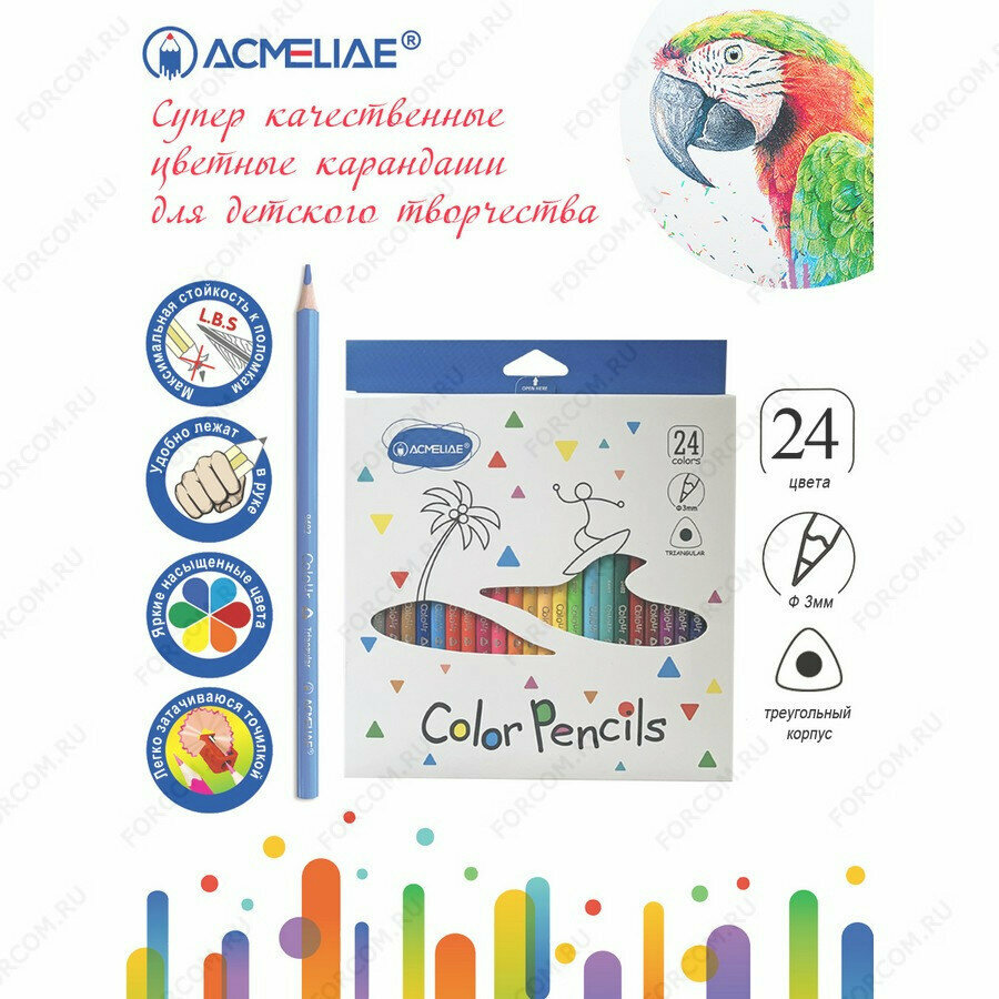 Набор карандашей цветных трехгранных Acmeliae 24 цв, в картонном футляре