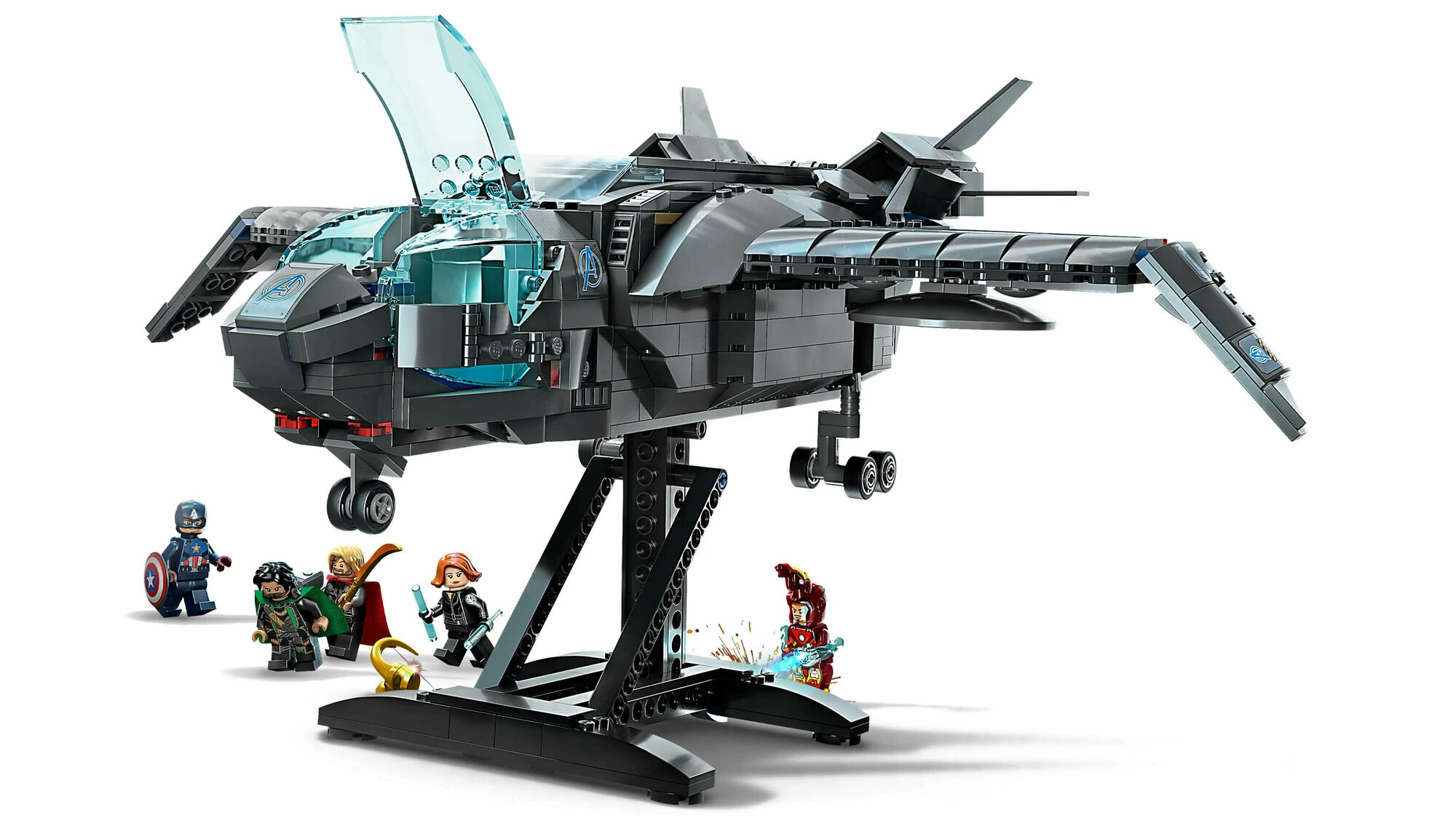 - Конструируй, играй и демонстрируй - Это детальное воссоздание знаменитого самолета Quinjet имеет открывающуюся кабину, пассажирскую зону и заднюю часть, а также выдвижное шасси и регулируемые крылья.