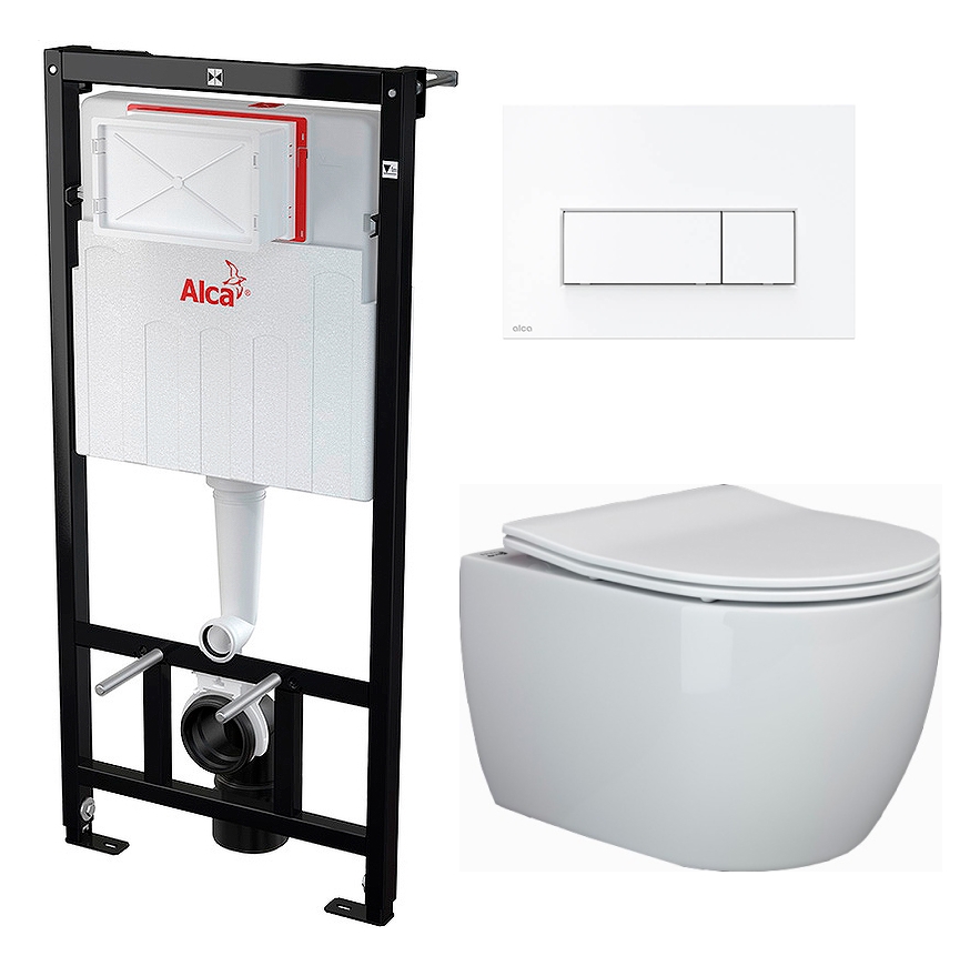 Комплект 3 в 1 инсталляция AlcaPlast + Унитаз подвесной Ceramica Nova Play CN3001 + кнопка белая