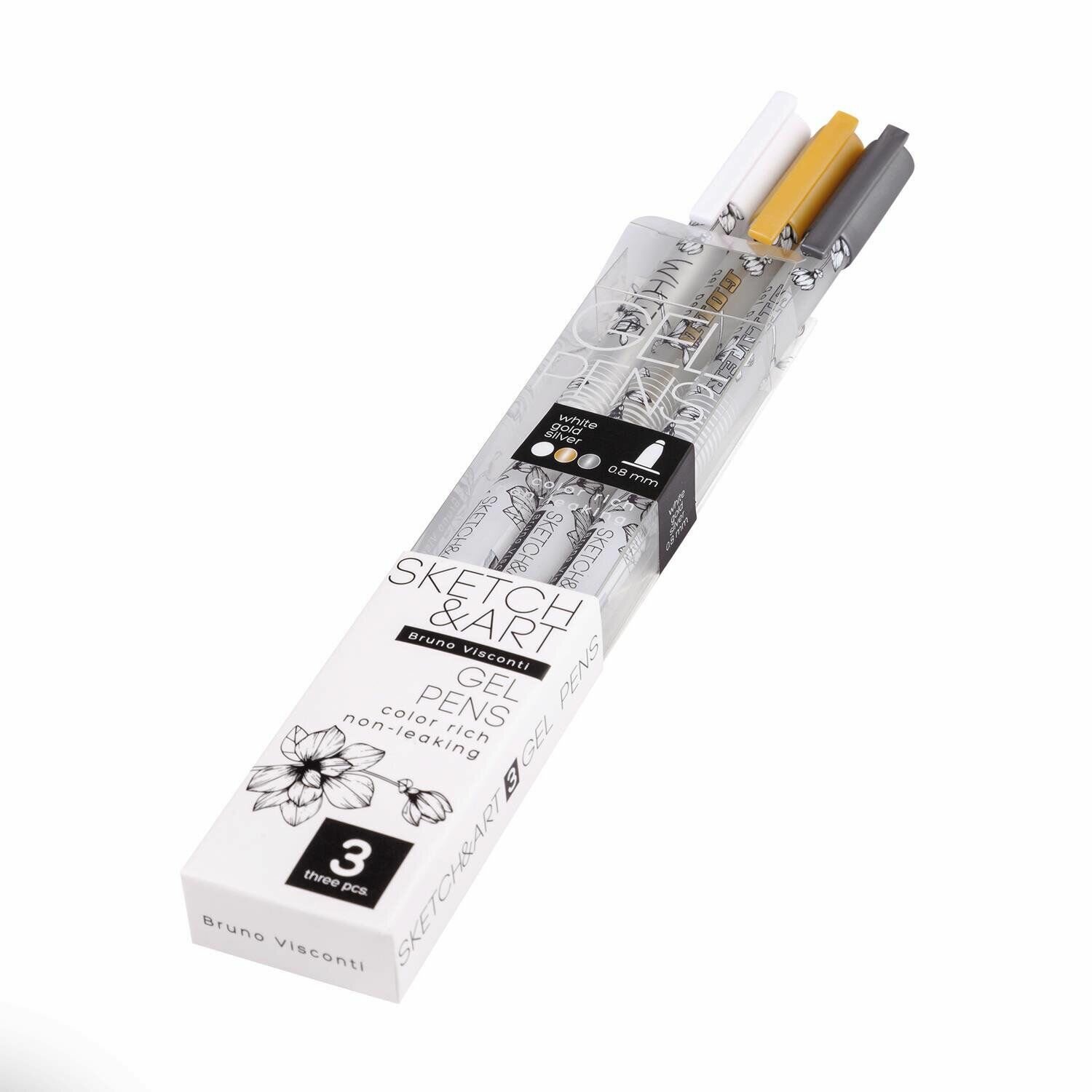 Ручки гелевые Sketch&Art. UniWrite, 3 цвета, золотая, серебряная, белая Bruno Visconti