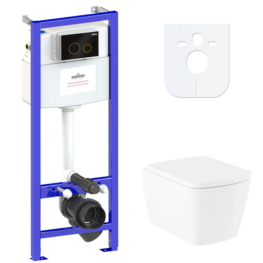 | Комплектация | безободковая чаша подвесного унитаза; сиденье микролифт; звукоизоляционный комплект; комплект крепежа; фигурный ключ; система инсталляции; клавиша смыва; документация |