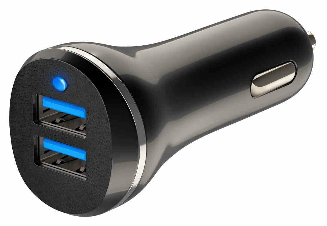 Зарядное устройство автомобильное для портативных устройств с двумя разъемами USB. Интеллектуальная защита: Встроенный предохранитель предотвращает повреждение подключённых мобильных устройств перепадами напряжения. LED-индикатор: светодиодная индикация процесса зарядки. Высокая скорость. Мощности устройства достаточно для зарядки на полной скорости.