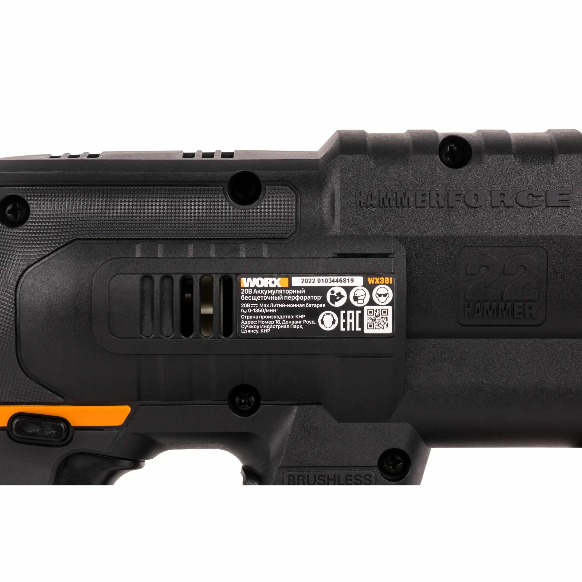 Перфоратор аккумуляторный бесщеточный SDS-plus Worx , 20 В Li-ion 1x4 Ач, 2 Дж WX381.1