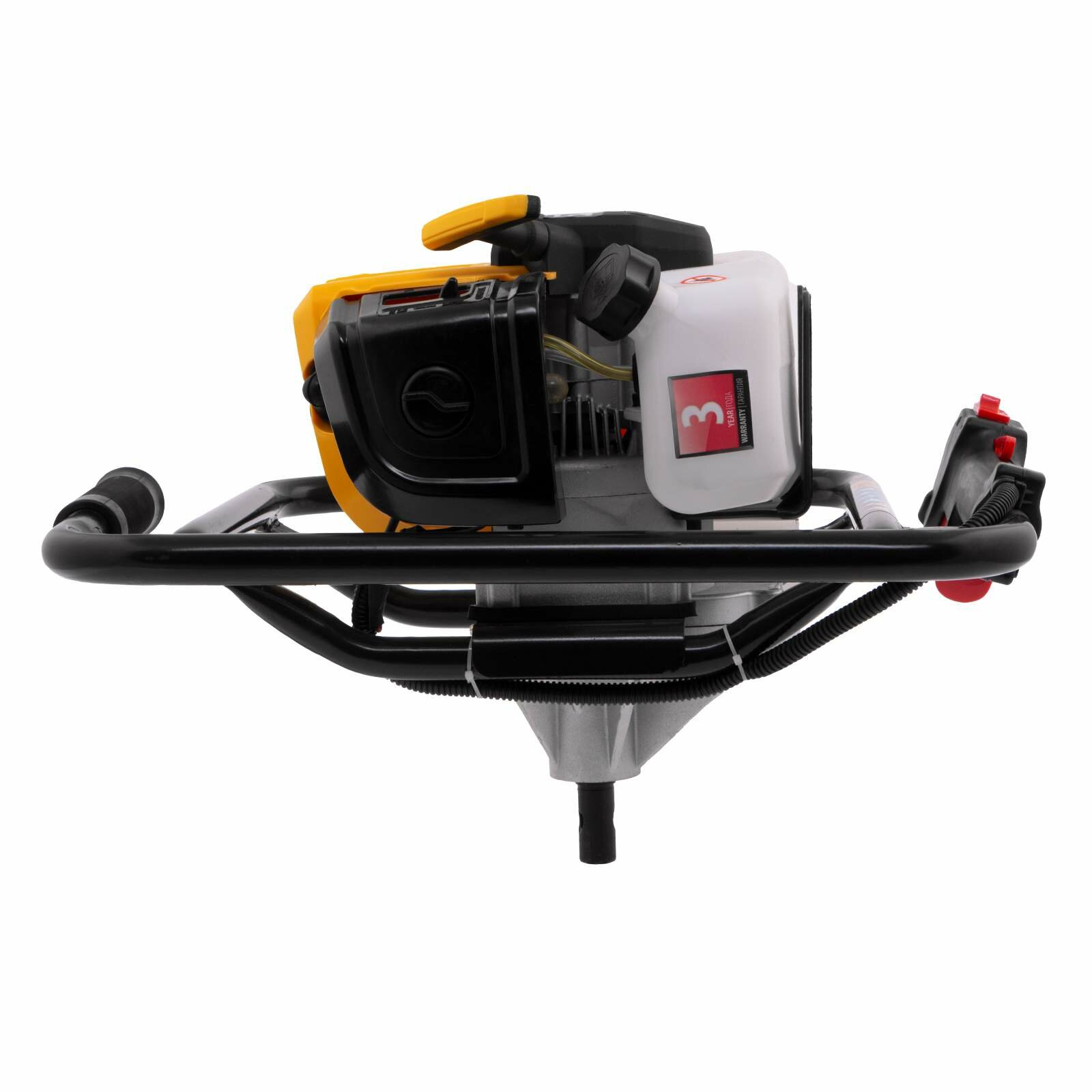 Мотобур Denzel DX-52 56001 с объемом двигателя 52 см3 и диаметром соединения 20 мм предназначен для получения отверстий и углублений во льду или в грунте максимальным диаметром 300 мм. Мощный и экономичный двигатель мощностью 3 л. с. позволяет эффективно решать поставленные задачи. Для бурения отверстий диаметром более 150 мм и глубиной более 1 м предусмотрена возможность управления мотобуром двумя пользователями. Устройство будет полезно на строительной площадке, загородном участке, пригодится также во время зимней рыбалки.ПреимуществаНадежная конструкция — корпус из высококачественного ударопрочного пластика и рама устойчивы к механическим воздействиям, усиленный редуктор рассчитан на интенсивное использование.Мощный и экономичный двигатель — техника обеспечивает высокую эффективность работы и низкий расход топлива.Удобное управление — выключатель зажигания и курок газа расположены на правой рукоятке.Безопасность пользователя — блокиратор курка газа препятствует случайному запуску шнека.Праймер подкачки топлива — двигатель легко запустится в холодную погоду или после долгого простоя.Легкая установка оснастки — благодаря быстросъемному соединению шнек фиксируется на выходному валу за несколько секунд.Быстрая подготовка к работе — мотобур поставляется в сборе, достаточно добавить смазку при необходимости, установить шнек и залить топливо в бак (шнек в комплект не входит).Удобное приготовление топливной смеси — специальный дозатор входит в комплект поставки.Решение широкого спектра задач — выходной вал диаметром 20 мм совместим со шнеками для грунта и льда, а также с удлинителями соответствующего присоединительного размера.Простое обслуживание — конструкцией предусмотрен легкий доступ к воздушному фильтру для его осмотра и очистки.Комфортная работа — оптимизированная антивибрационная система снижает нагрузку на руки.Гарантия 3 года — надежность мотобура подтверждена производителем.