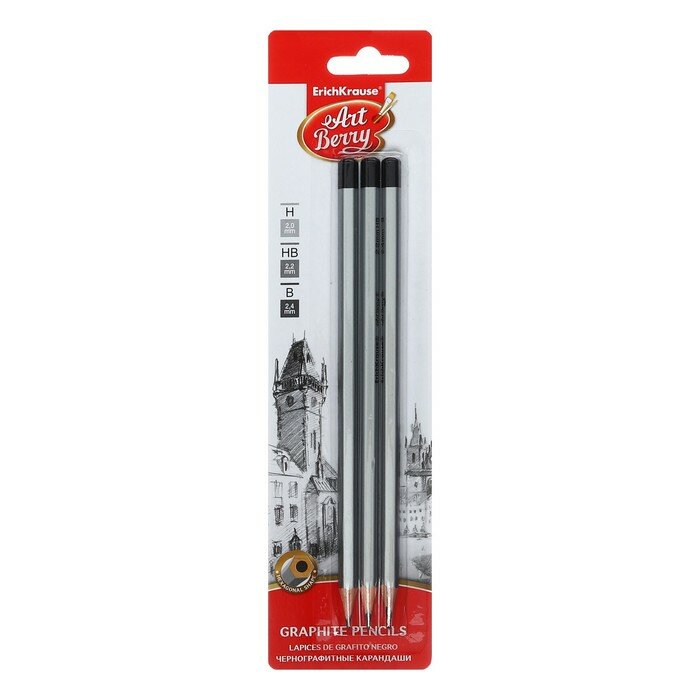 Набор чернографитных карандашей разной твердости ArtBerry, 3 шт
