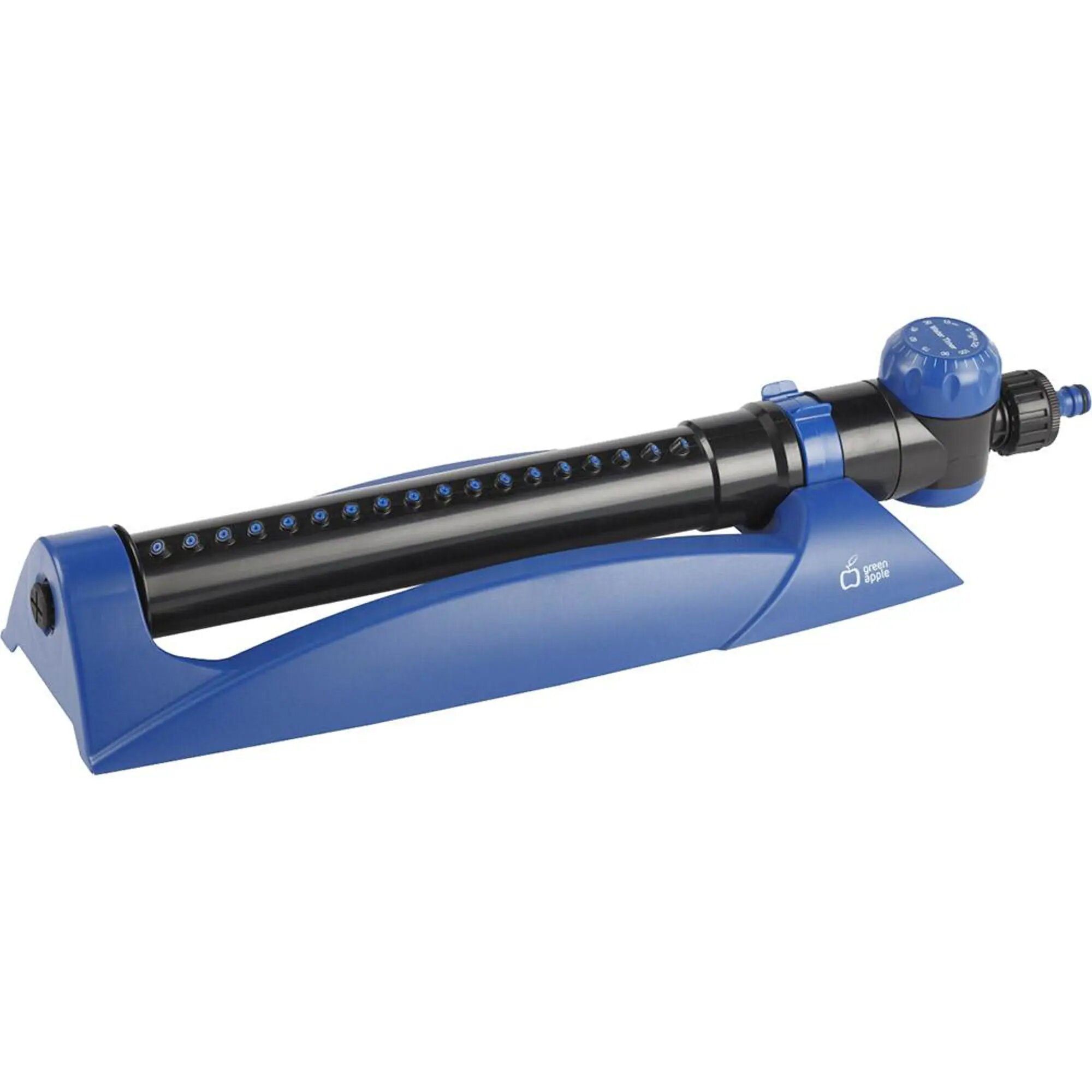 Дождеватель GREEN APPLE с таймером предназначен для равномерного полива прямоугольных участков площадью до 340 м2. Встроенный таймер позволяет установить время до отключения в диапазоне 15 - 120 мин. Снабжен фильтром и специальной иглой для очистки сопел.