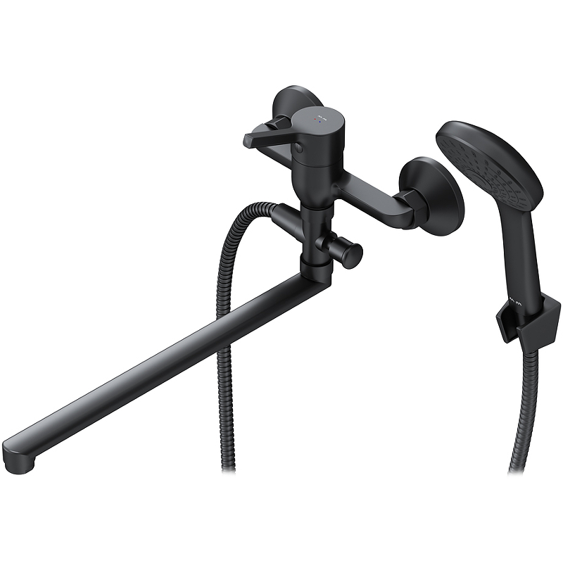 Стильное универсальное решение для ванной комнаты - качественный смеситель для ванны и душа с длинным поворотным изливом с душевым набором. Универсальный длинный излив позволяет спользовать смеситель как для ванны, так и для рядом стоящей раковины. Функциональный держатель для ручного душа на два положения добавит удобства использования. Душевой шланг длиной 150 см позволит наслаждаться душем даже высокому человеку. Максимум функций за разумную плату в одном изделии! Ультрамодный дизайн ручки придает смесителю дополнительную динамику и дарит непревзойденную легкость управления. Вы почувствуете это с первого прикосновения. Точная инженерия для Вашего комфорта: благодаря обширной зоне движения ручки управлять температурой воды стало еще проще.
