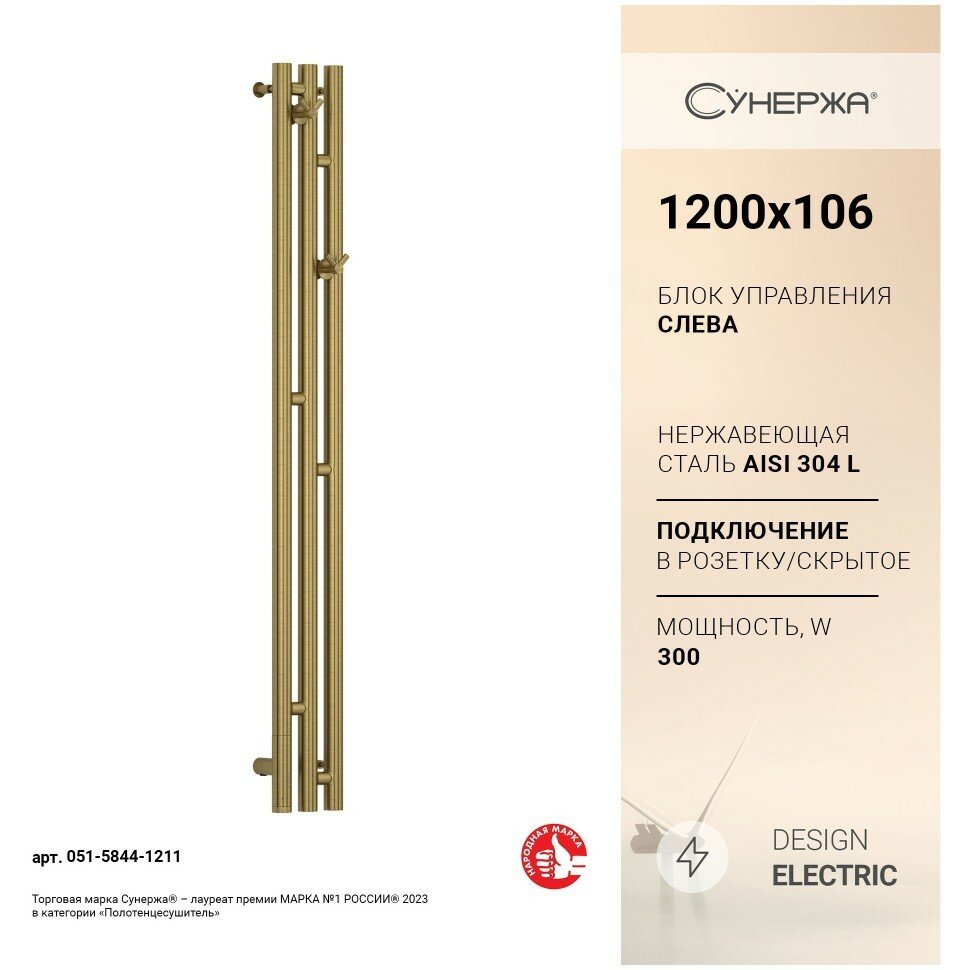Полотенцесушитель электрический Сунержа Терция 3.0 120х10,6 L состаренная латунь Терция 3.0 051-5844-1211