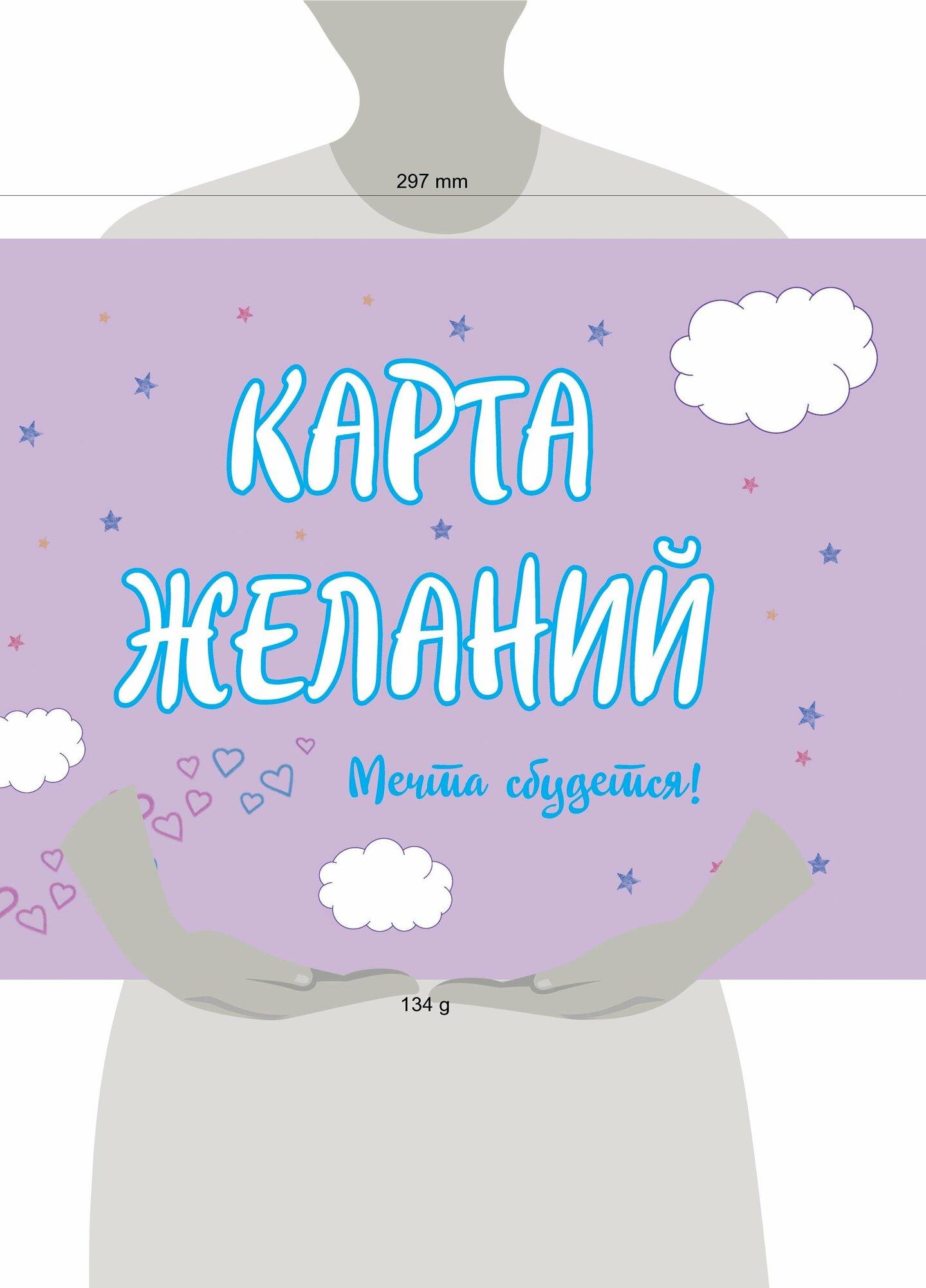 В набор входят: карта на плотной бумаге, подробная инструкция на двух листах, наклейки с фото желаний.