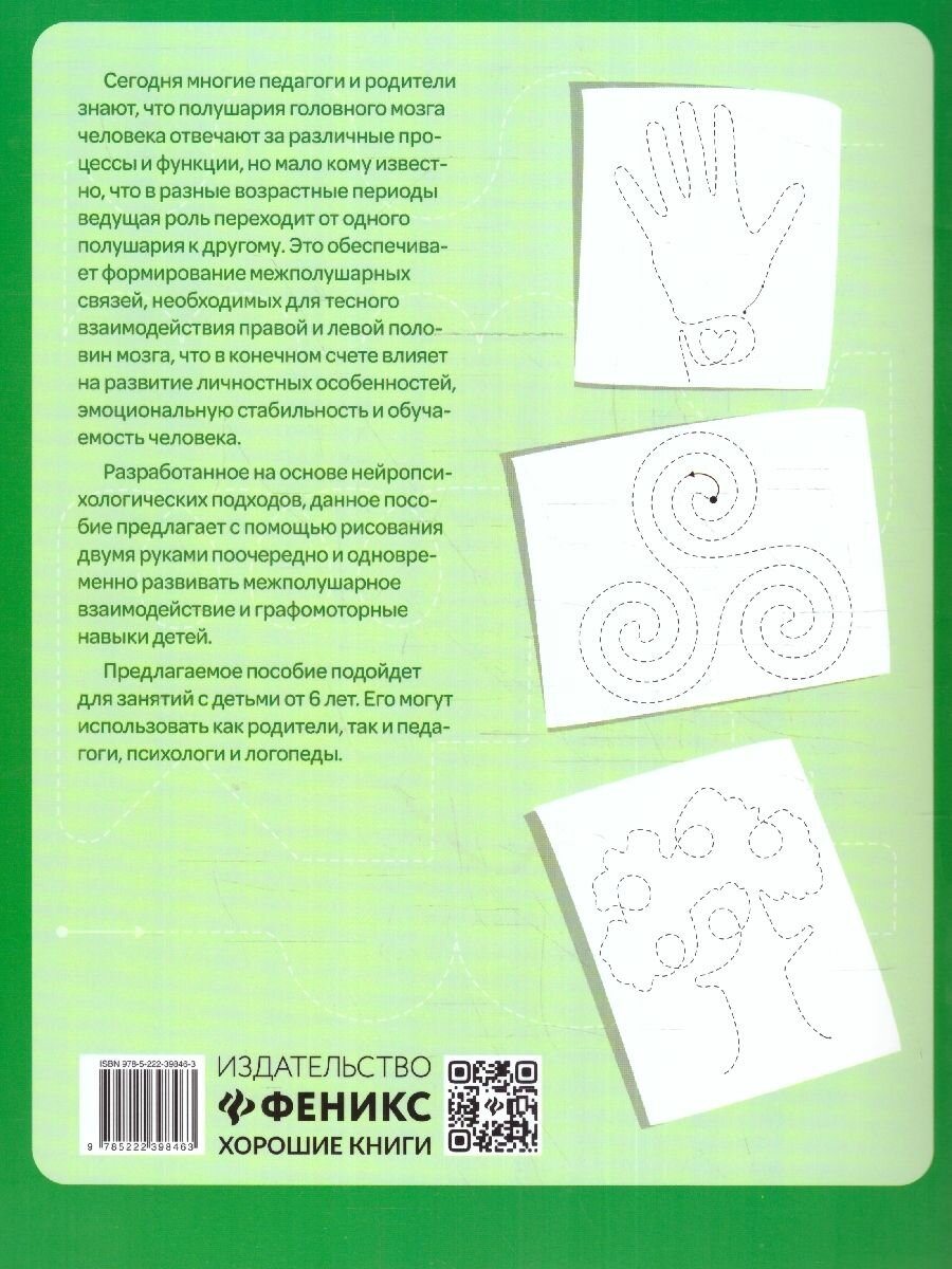 Разработанное на основе нейропсихологических подходов, данное пособие предлагает с помощью рисования двумя руками поочерёдно и одновременно развивать межполушарное взаимодействие и графомоторные навыки детей.