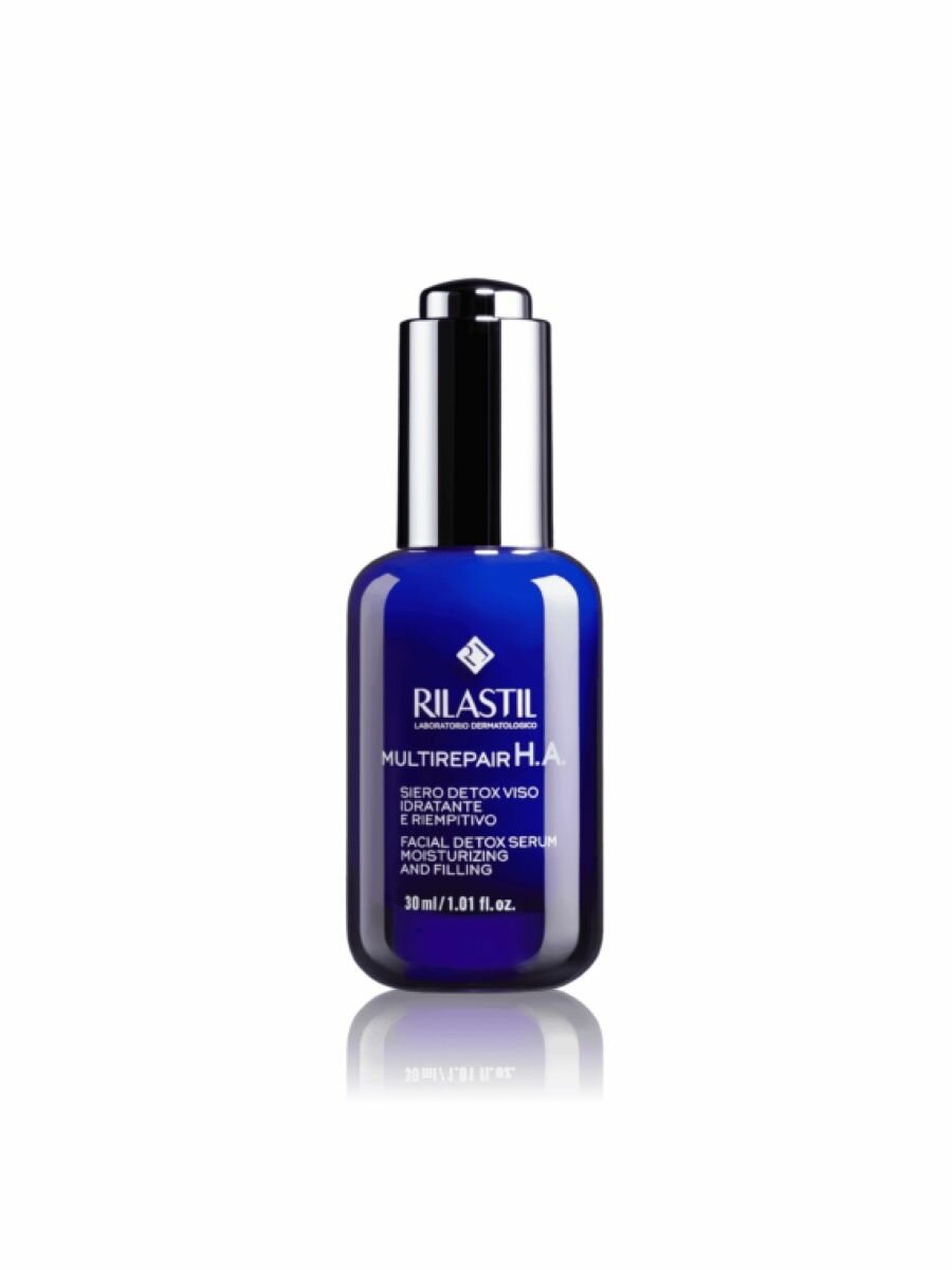 RILASTIL MULTIREPAIR H. A. Интенсивный увлажняющий концентрат с шелковистой текстурой и быстрым впитыванием, подходит для всех типов кожи. Multirepair HA — это сыворотка для лица, которая восстанавливает оптимальный уровень увлажнения кожи, обеспечивая эффект наполнения и разглаживания морщин, благодаря наличию эксклюзивного комплекса HA. Синергия между Детоксиоксом и пленкообразующим эффектом гиалуроновой кислоты определяет доказанное детоксифицирующее действие против загрязнения (по результатам испытаний продукта), что делает его особенно подходящим для тех, кто ведет напряженную повседневную жизнь в загрязненной среде (городские центры, сигаретный дым, смог). Миндальная кислота способствует мягкому отшелушиванию, стимулируя обновление клеток и обретая свежесть цвета лица. Действие: интенсивное увлажнение, отшелушивание, стимуляция обновления клеток эпидермиса, защита от негативного воздействия окружающей средыРекомендации по применению:наносить утром и вечером на тщательно очищенную кожу лица, шеи и зоны декольте. Для очищения мы предлагаем очищающее молочко Rilastill Daily Care Cleansing Milk Oil.