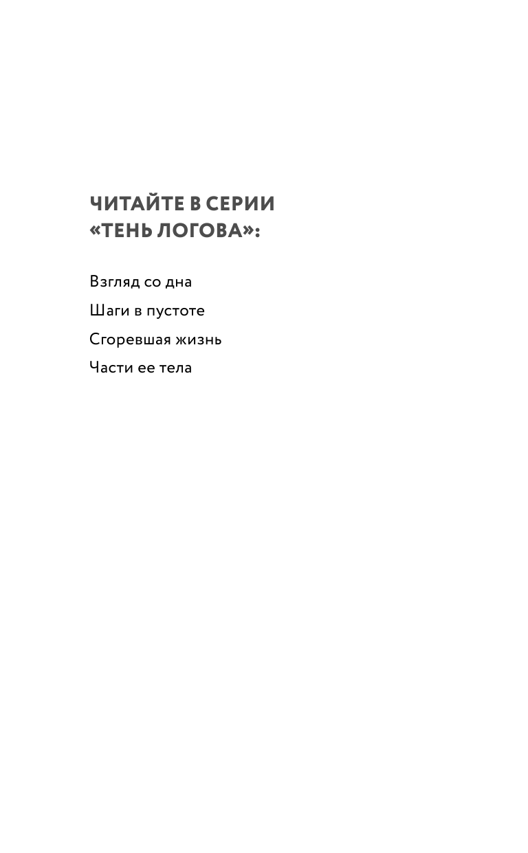 В новом романе Юлии Лавряшиной мы продолжаем следить за тем, как следователь Артур Логов и его союзница Саша Каверина ходят по грани, раскрывая жестокие и хитроумные убийства. Саша оказывается в одной компании с преступником, но предотвратить убийство не удается. Ведь все молодые ребята кажутся обычными людьми.