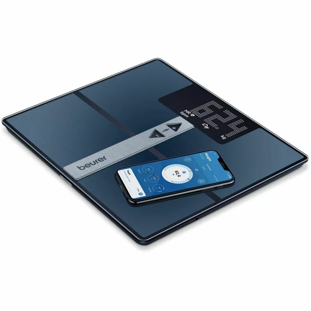 | Дополнительные значения с бесплатным приложением beurer HealthManager Pro | записи данных анализа и графическое представление метаболического возраста, тканевой жидкости, калорий, BMR/AMR и минеральной плотности костной ткани |