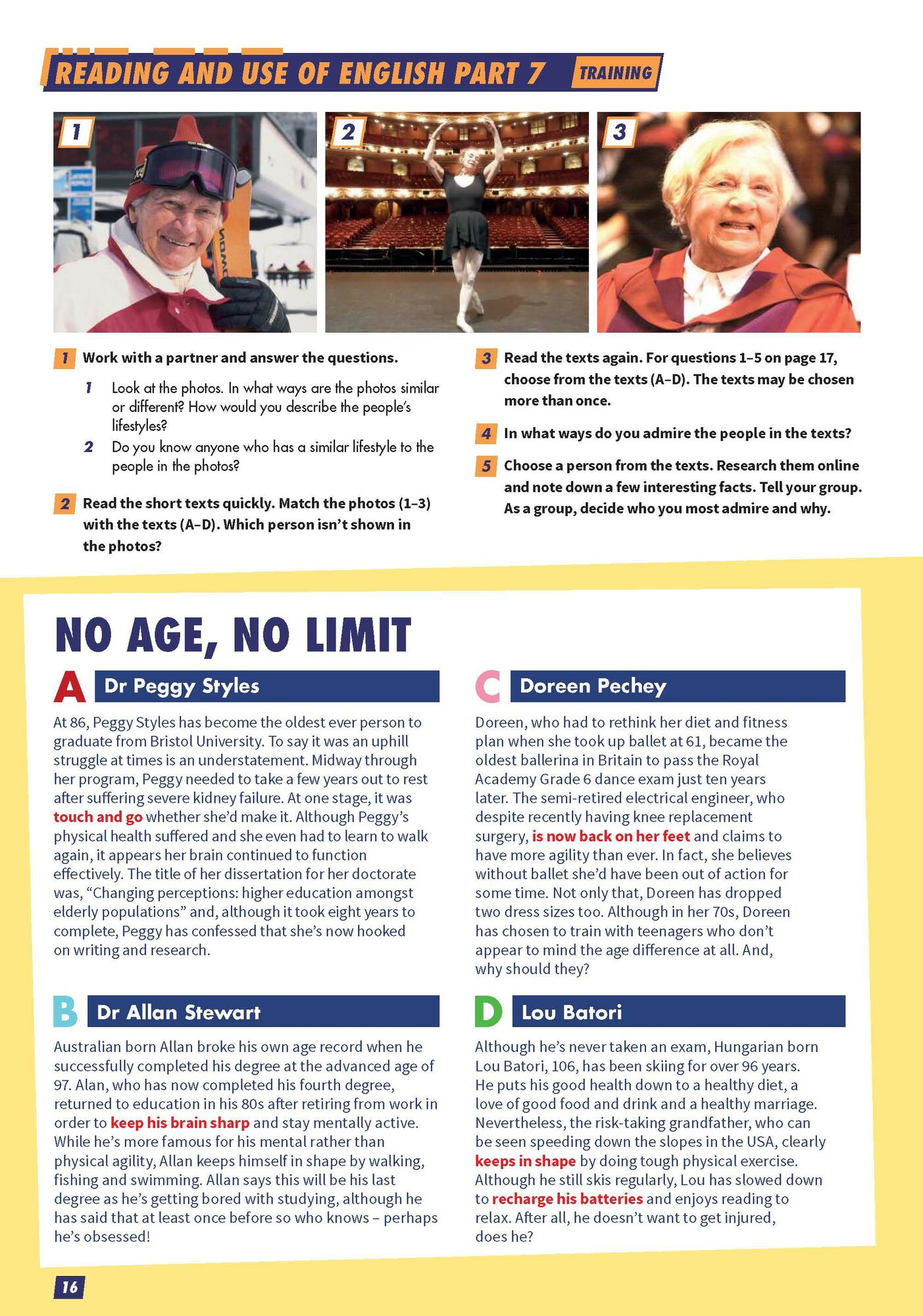 Уникальное прохождение экзамена на протяжении всего курса максимально повышает успеваемость студентов: задания для подготовки к экзамену укрепляют уверенность учащихся в своих навыках, позволяя им перейти к полноценной практике выполнения заданий в рамках экзамена. Разделы "Real World" расширяют знания о языке и знакомят с распространенными, но удивительными выражениями, в то время как мобильная анимация "Grammar on the Move" стимулирует обучение вне класса. Дополнительные разделы "Push Yourself" расширяют возможности и уверенность учащихся до уровня владения языком C1.
