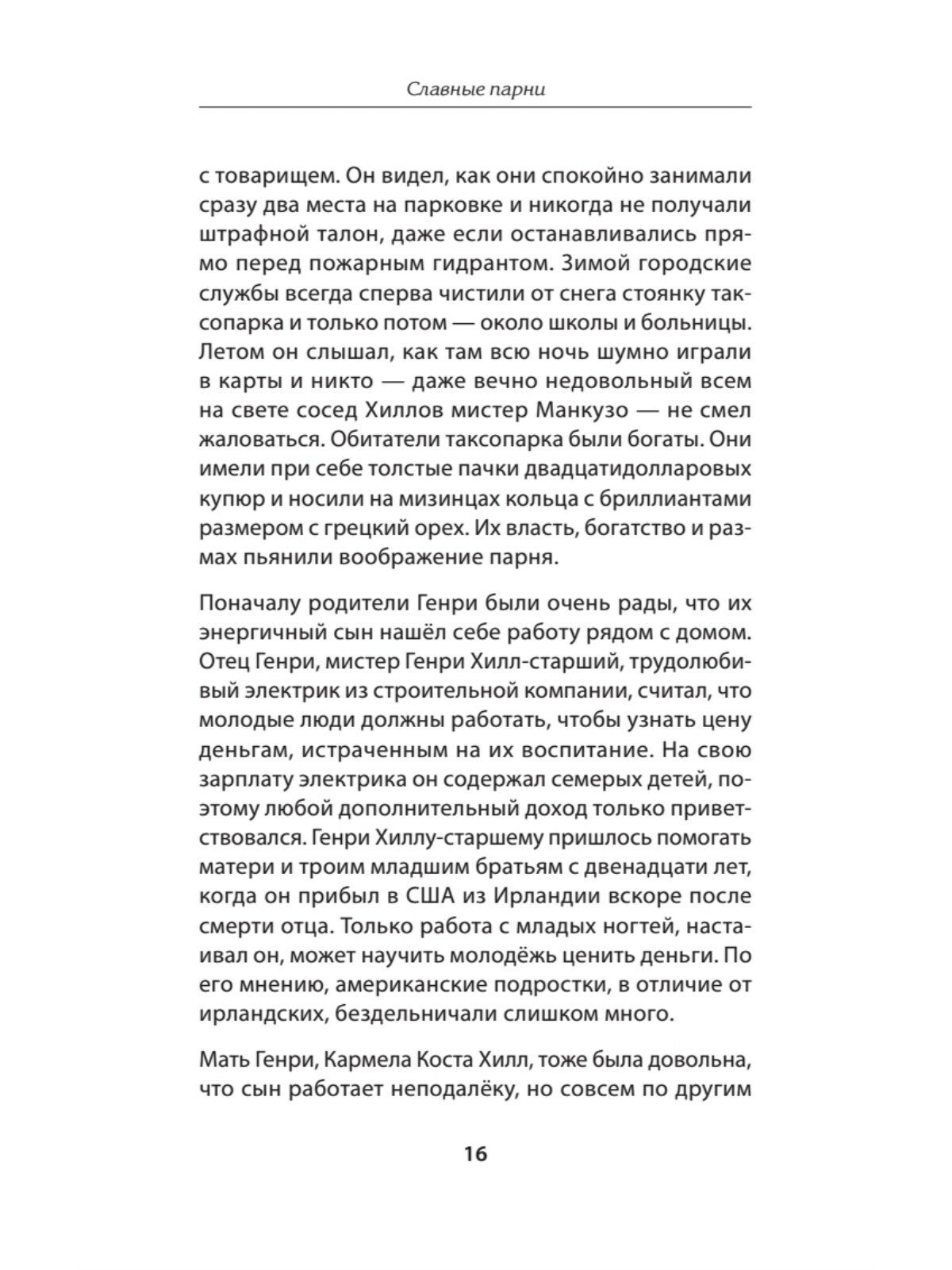 Генри Хилл был бандитом. Он был аферистом. Он строил козни, плёл интриги и проламывал головы. Он знал, как дать взятку и знал, как обуть лоха. Он работал в мафии на полную ставку в качестве рэкетира и громилы, он был rara avis — той редкой птицей, которую охотно изучили бы как социальные антропологи, так и копы. На улицах он и его друзья называли себя «умниками». Мне кажется, его история даёт уникальный взгляд изнутри на жизнь пехотинца оргпреступности, которую обычно описывают либо посторонние, либо capo di tutti capi, мафиозные боссы.