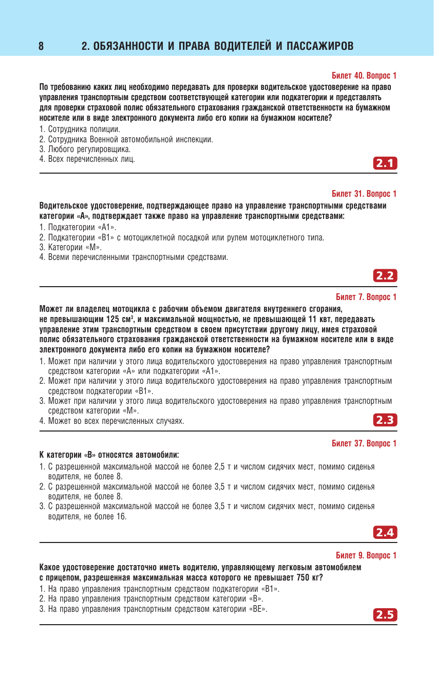 В издание вошли все 800 вопросов, которые используются для приема теоретического экзамена на право управления транспортными средствами категории «А», «В», «М» и подкатегорий «А1», «В1».