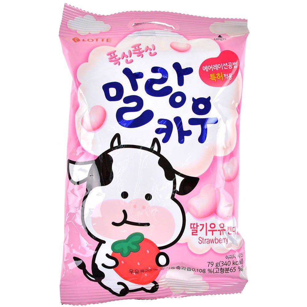 Lotte Жевательные конфеты со вкусом клубники, 79грЖевательные конфеты со вкусом клубники имеют воздушную текстуру и напоминают нежнейшие маршмеллоу.Эти сладости производятся по уникальной современной методике. Сквозь сладкую массу, изготовленную из молока высшего сорта, особым образом пропускают воздух. Благодаря этому конфета становится пористой и мягкой.