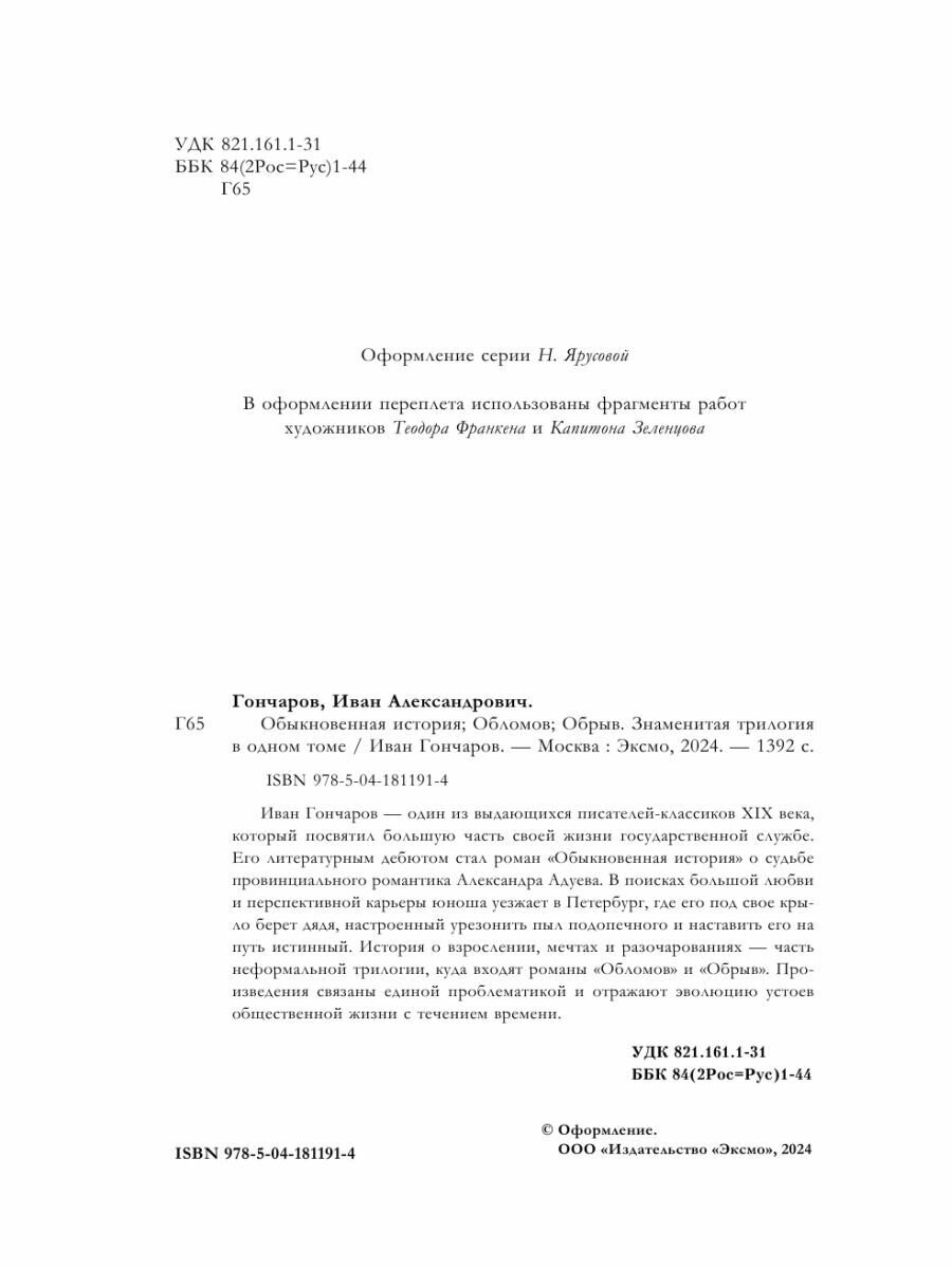 Обыкновенная история. Обломов. Обрыв. Знаменитая трилогия в одном томе; Эксмо, Редакция 1, 2024