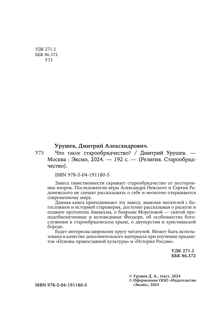 Что такое старообрядчество? (Дмитрий Александрович Урушев); Эксмо, 2024